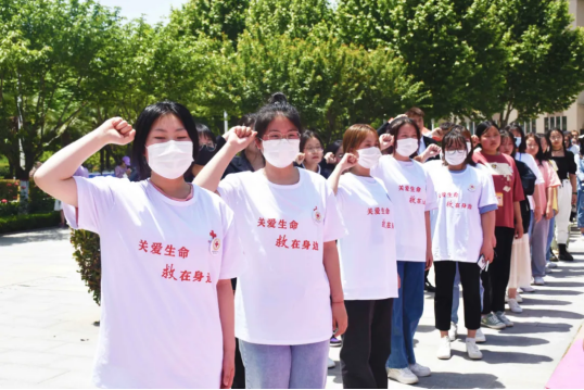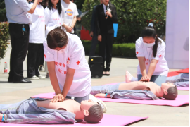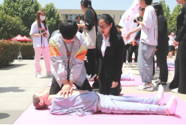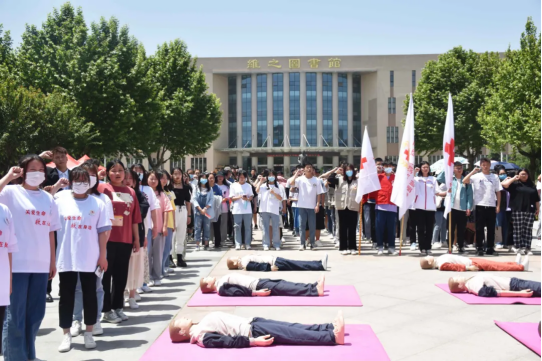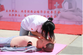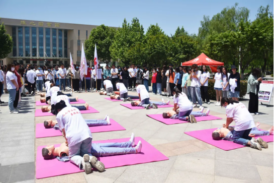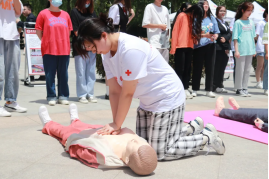 5月8日中午,星空·官方站网页版红十字会在学校综合楼西广场隆重举行星空·官方站网页版红十字会2021年五八博爱周暨“关爱生命、救在身边”应急救护宣传月主题活动。活动中,由红十字会学生分会急救培训部的10名急救志愿者向大家进行心肺复苏实操演练,并积极和现场同学进行应急救护互动宣讲。