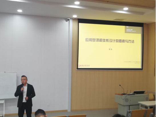5月7日下午,教务管理中心副主任张伟为各位新入职教职工做了题为“应用型课程建设的要素与方法”的讲座。向青年教师介绍了应用型课程建设的要素与方法,引导青年教师从应用型课程改革入手,做好“以学生为中心”的课程设计,引导学生真学、真做、学会真本领。