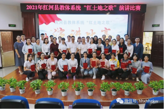 参加县第十三届“红土地之歌”演讲比赛(前排左6)