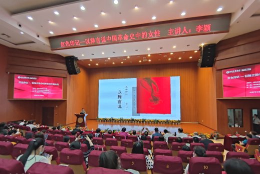 为了让更多女大学生了解女性在中国革命中的重要作用,丰富党史学习教育的内涵,创新党史学习教育的形式,更好传承女性教育和红色文化传统,5月19日下午,由学校党委主办、马克思主义学院承办的第三场党史学习教育大讲堂在图书馆报告厅举办。本次讲座邀请西安音乐学院舞蹈学院李颖院长作“红色印记—以舞言说中国革命史中的女性”专题讲座。学校党委书记罗新远教授、党委委员、党委办公室主任陈玲、校长办公室主任李健、各二级学院党委书记、总支书记及委员、女子学院班理副院长、马克思主义学院全体教师、部分教师代表和全校学生代表近200人参加了本次讲座。本次讲座由马克思主义学院院长史晓眉教授主持。