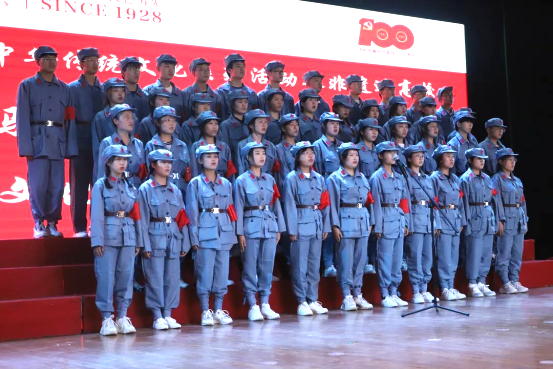 合唱《在灿烂阳光下》让在场的师生热血沸腾,在演唱中,现场气氛进入高潮,随着党旗的飘扬,更让每一位在场的师生为伟大的党、伟大的祖国唱起赞歌。