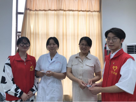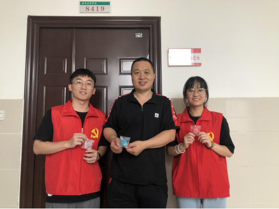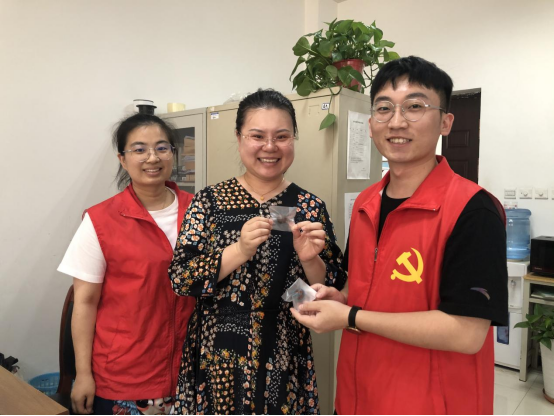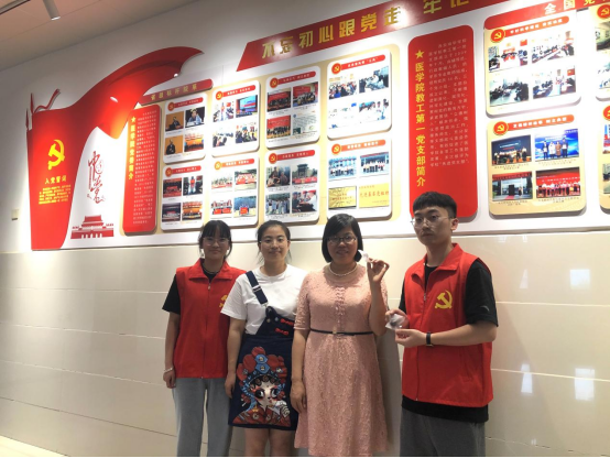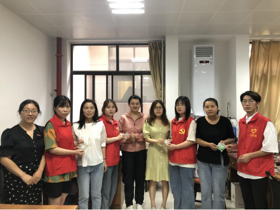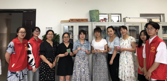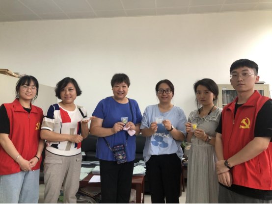 在全国样板党支部医学院教工第一党支部组织委员李亮老师及院党委宣传委员李萌老师的带领下,学生党员代表走进一线教师办公室将此次药学应用实践成果——天然香皂及大蜜丸送入各系辛勤工作的老师们手中,在炎炎夏日为群众办实事、送温暖。同时,医学院主动邀请全体师生参观、进行成果评价及产品免费试用。