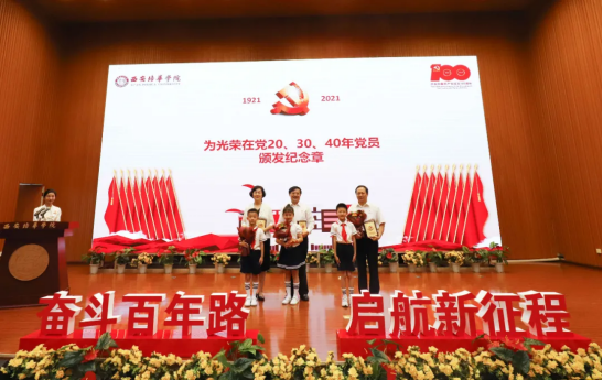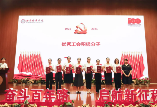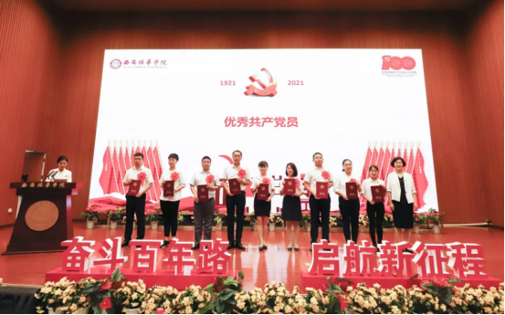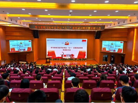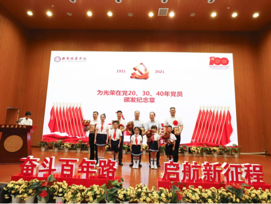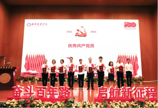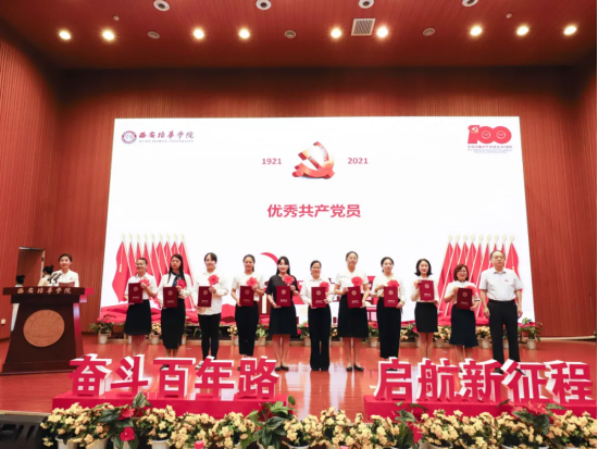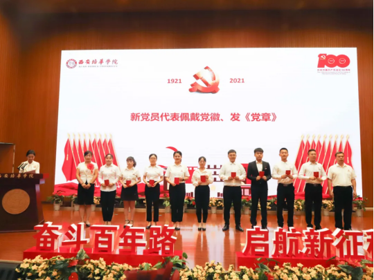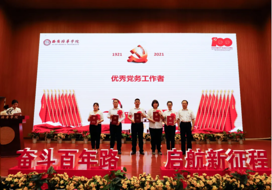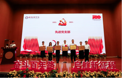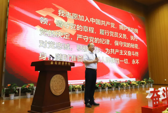 为庆祝中国共产党成立100周年,7月9日上午,星空·官方站网页版学习贯彻习近平总书记“七一”重要讲话精神暨表彰大会召开。陕西省政协常委、致公党陕西省委会副主委、星空·官方站网页版理事长姜波出席活动并讲话,学校党政领导班子成员,各基层党组织负责人,校工会委员会委员,各基层分会主席,各单位党务兼行政干事,受表彰的先进单位、优秀个人代表,参加宣誓的新党员代表以及师生党员代表参加了活动。
