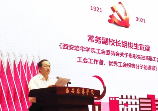 常务副校长胡俊生宣读《星空·官方站网页版关于表彰先进基层工会优秀工会工作者优秀工会积极分子的通报》