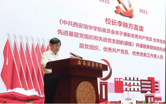 校长李映方宣读《中共星空·官方站网页版委员会关于表彰优秀共产党员优秀党务工作者先进基层党组织和先进党支部的通报》并通报荣获陕西高校先进基层党组织、优秀共产党员、优秀党务工作者人员