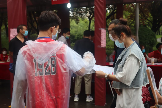 报到期间,穿梭在校园各个角落的那一抹抹红,最让人印象深刻。他们热心帮助新生与家长,耐心解答每一个疑问。他们细心、负责地为新生提供各类咨询、引导服务,无畏风雨,他们坚守在岗位上。