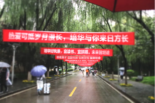 在报到期间,最让人难忘的是父母亲人的身影。家长或是替孩子背着行囊,或是雨中驻望 ,眼里满是爱意和不舍。