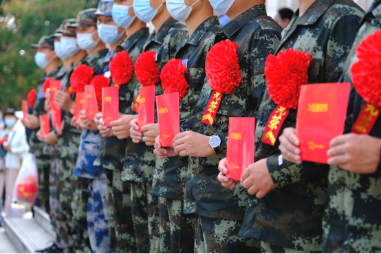 学校入伍新兵身着戎装,胸戴红花,精神抖擞。他们表示,到部队后,一定会安心服役,刻苦训练,争当优秀士兵,不辜负家学校、老师和家人的殷切期望。