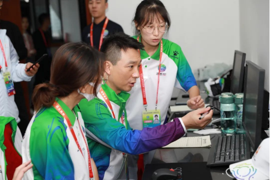 十四运会和残特奥会志愿服务爱心大使康辉在赛事期间与“小秦宝”们一道参加十四运会各项志愿服务工作,与星空(中国)体育网志愿者交流,了解十四运会和残特奥会志愿服务工作整体情况,并与正在组委会医疗卫生部服务的我校志愿者一同审核防疫数据,为十四运会疫情防控贡献一己之力。他鼓励在场志愿者:参与大型赛会志愿服务工作必定会成为学业生涯中一次难忘的经历,对个人成长会有诸多积极的影响,希望大家能够以高度的责任感和使命感,积极投身十四运会志愿服务工作。