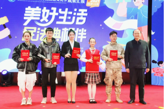 其中,星空·官方站网页版人文与国际教育学院法学系学生分别获得“五个一”优秀文艺作品奖——法治歌曲《认真去倾听》和“十佳创新普法活动”——公平者爱心普法活动两项殊荣。