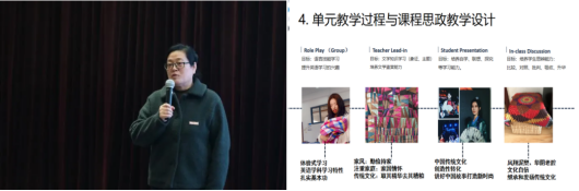 人文与国际教育学院学前教育系副主任栾博强以《基于行业标准的<学前儿童艺术教育>课程思政设计》为题进行了主题分享。他将幼儿园教师师德为先、幼儿为先、能力为重、终身学习的行业标准融入幼儿园集体音乐活动、集体美术活动和艺术主题活动中,把问题导入、情境创设、合作讨论、演练实践、总结评价融入中华优秀传统文化,培养学生的道德情操、创新意识和工匠精神。