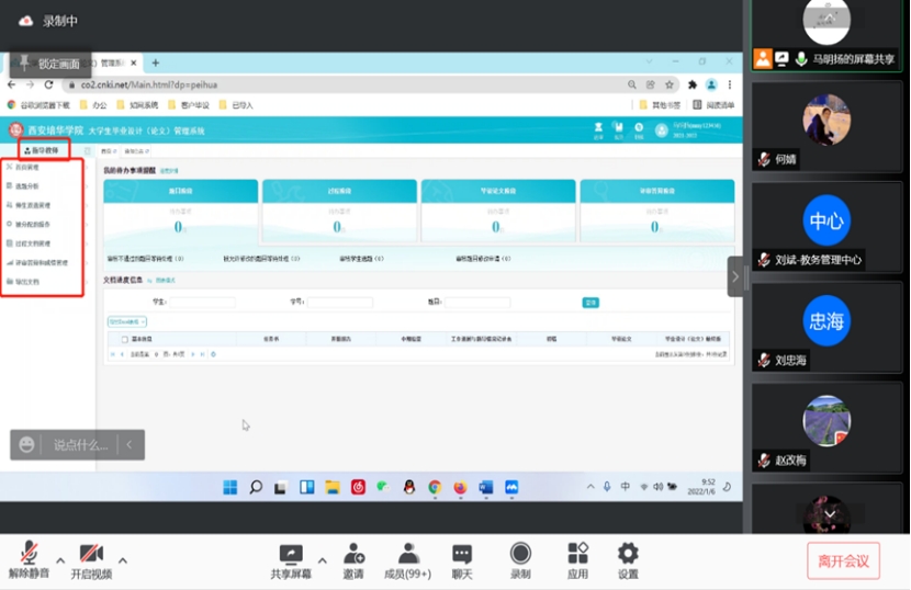 规范管理,增强信息化手段。为了进一步推进论文管理的规范化和信息化,学校自2021届毕业生采用了知网毕设管理系统。论文(设计)指导老师和学生在线上完成课题申报、选题、任务书、开题、过程指导、答辩、成绩管理等整个毕业设计过程,并可以留存全部过程和结果数据,提供信息查询和导出服务等。同时,学校邀请了知网公司负责人对毕设系统的操作流程及方法进行了多次培训和演示,提高了教师对系统使用的熟练程度。