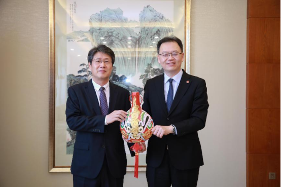 4月27日上午,韩国驻西安总领事馆金汉圭总领事、大韩民国驻西安总领事馆魏秀姬领事等一行4位莅临我校交流访问。我校理事长姜波、副校长刘越莲、国际交流中心主任王鹏、建筑与艺术设计学院常务副院长徐莹、韩国籍教授崔圣伯陪同参观并座谈。