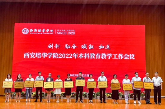 校领导分别为2021年度优秀校外实习基地、中国高等教育博览会“校企合作 双百计划”典型案例入选案例、第七届中国国际互联网+大学生创新创业大赛国赛获奖项目指导教师团队、2021年度全国大学生数学建模竞赛国赛获奖项目指导教师及2021年度陕西省一流本科专业建设点所在单位颁发了奖牌和奖金。