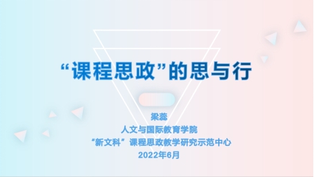6月29日下午,教师发展中心特邀我校教学名师、人文与国际教育学院常务副院长梁蕊副教授为我校二百余名教师作了题为《课程思政的“思”与“行”》线上讲座。本次讲座的内容主要是围绕如何将思想教育贯穿人才培养体系、如何推进课程思政建设进行解读及案例分享。