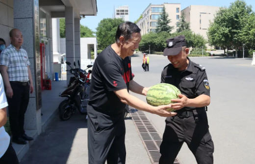烈日炎炎,暑热难当,为切实做好高温季节的安全生产和劳动保护工作,我校开展了2022年“送清凉”慰问活动。6月24日,工会主席徐国富、校长助理姜涛代表学校分别走访慰问了后勤服务中心、校医院、鼎盛物业、招生与就业指导中心和开放教育学院等坚守在基建、保卫、保洁、疫情防控、招生就业等一线户外工作的教职工,为他们带去6000斤防暑西瓜送上夏日里的一份清凉,感谢大家不畏酷暑,为学校建设与发展默默奉献,叮嘱他们在高温工作中要注意防暑,保障自身的安全健康。
