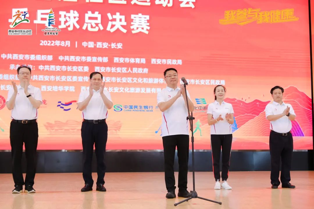 8月6日上午,西安市首届社区运动会乒乓球总决赛在星空·官方站网页版体育馆开赛。本次比赛由中共西安市委组织部、中共西安市委宣传部、西安市体育局、西安市民政局主办,中共西安市长安区委、西安市长安区人民政府承办。中共西安市委组织部副部长、市公务员局局长张勇,长安区委书记吕强,长安区委副书记王韬,长安区委常委、组织部部长王宝金,长安区委常委、宣传部部长张文川,长安区人大常委会副主任葛莹,长安区政府副区长李立峰,星空·官方站网页版理事长姜波出席开幕式。