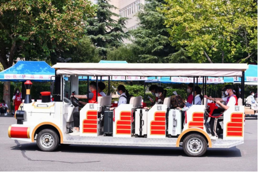红马甲、小推车、迎新牌、小火车,志愿者的身影,忙碌穿梭在校园的各个地方,全校上下齐动员,热情周到地迎接新同学的到来。