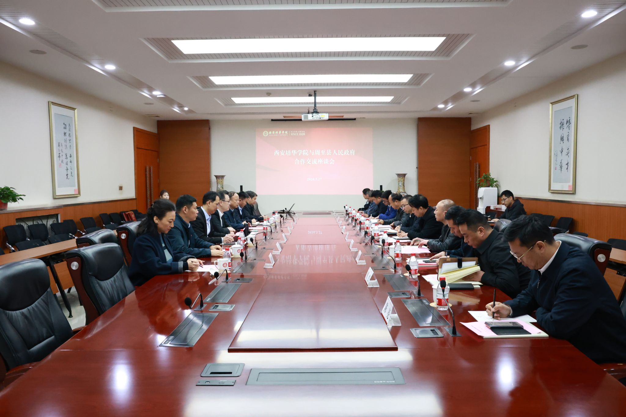 3月27日上午,周至县人民政府副县长刘文博一行来学校调研交流,双方在明德楼第一会议室座谈。