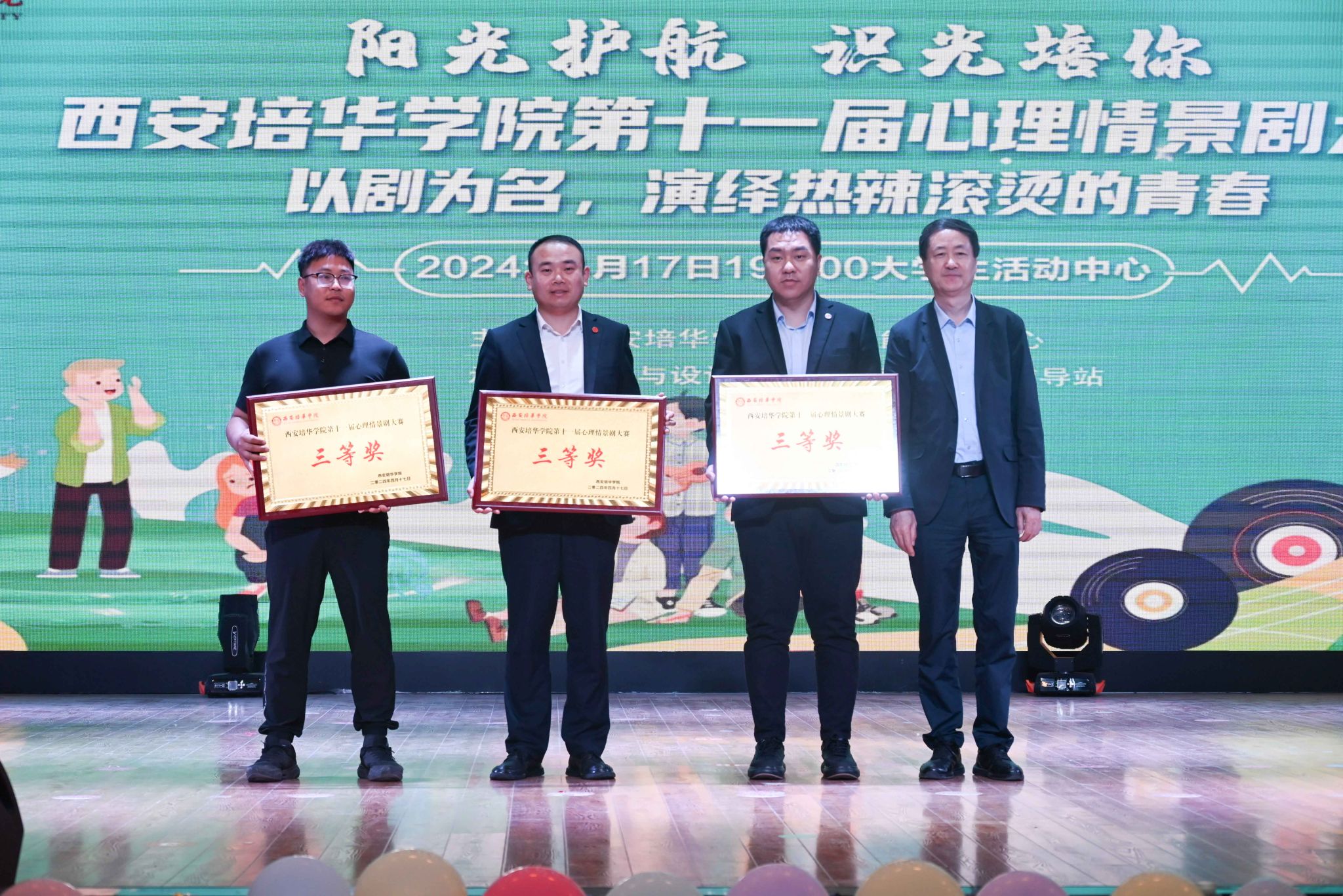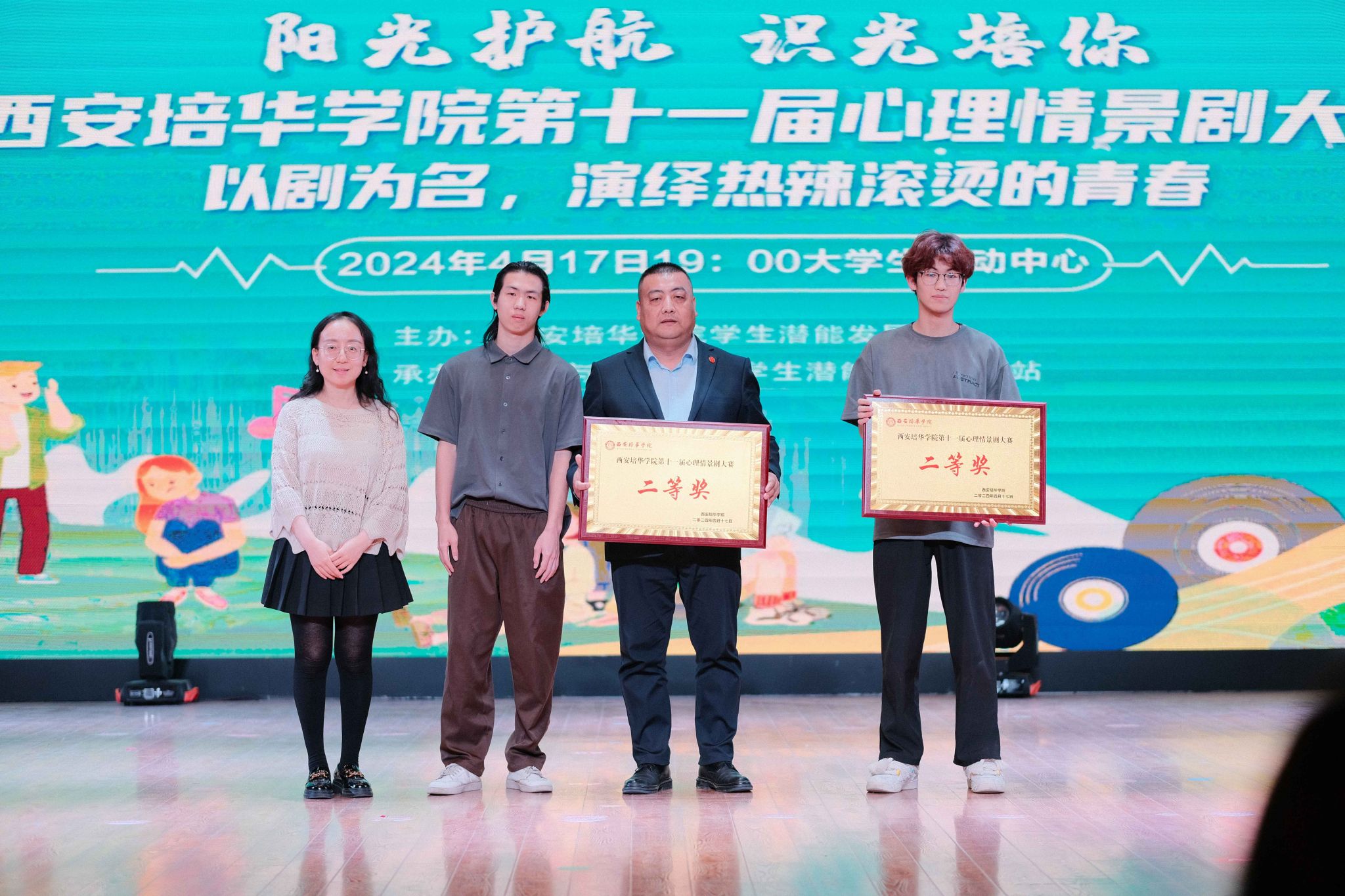 4月17日晚,由星空·官方站网页版学生潜能发展中心主办、传媒与设计学院承办的星空·官方站网页版大学生心理情景剧决赛正式落下帷幕。本次大赛以“以剧之名,演绎热辣滚烫的人生”为主题,旨在鼓励学生通过戏剧表演形式表达和处理心理冲突和情绪问题,促进自我成长。陕西高校心理素质教育研究会会长郑林科,西北工业大学学生心理健康中心副主任刘欣,学生工作部部长权勇太,艺术教育中心主任刘荣弟,学生潜能发展中心主任韩赟,医学院党委书记兼行政副院长史立军,会计与金融学院党委书记兼行政副院长刘斌,体育学院党委书记兼行政副院长马德厚,法学院党委书记兼行政副院长韩斌,传媒与设计学院党委副书记南斌红等师生代表出席。