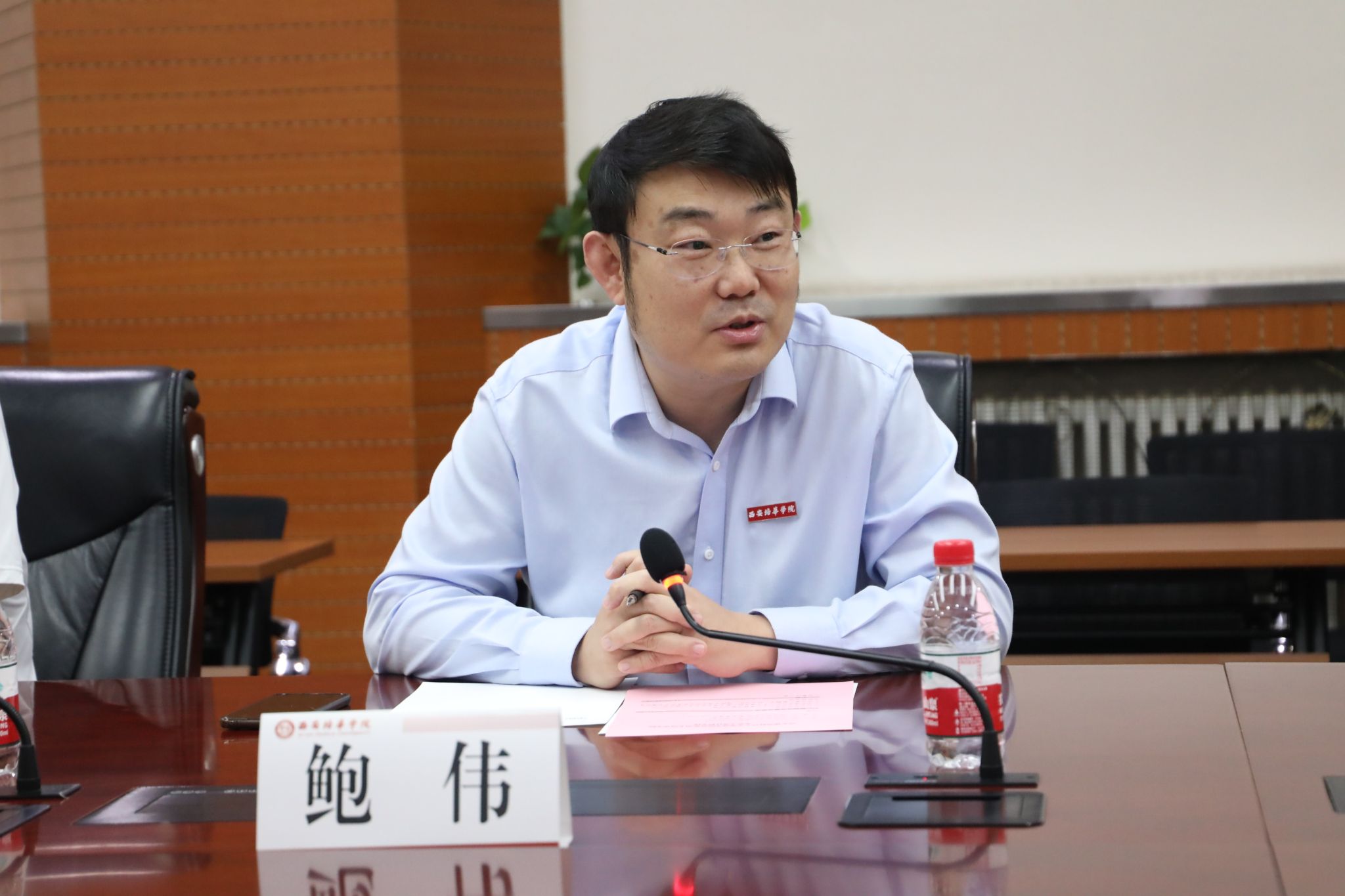 鲍伟对西安建筑科技大学华清学院各位领导老师的来访表示热烈欢迎,并介绍了学校的发展历史及办学规模,希望通过此次交流活动加强双方学校的合作,实现共同进步。