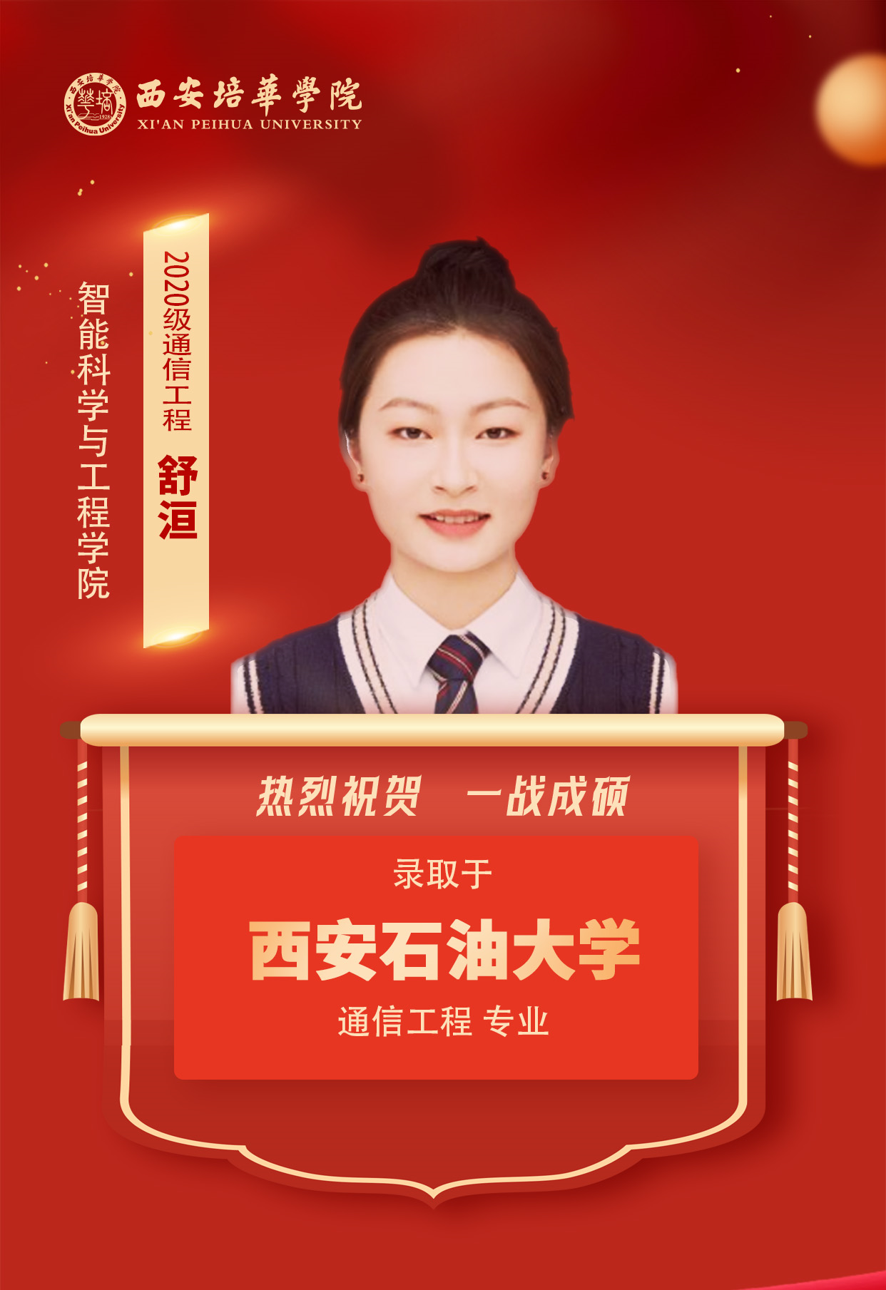 2020级英语专业学生 张娜娜(考入延安大学):Anything is possible!我的人生信条是“任何事情皆有可能!”只要相信“相信”的力量,全力奔跑,没有做不好的事情,没有做不成的事情!