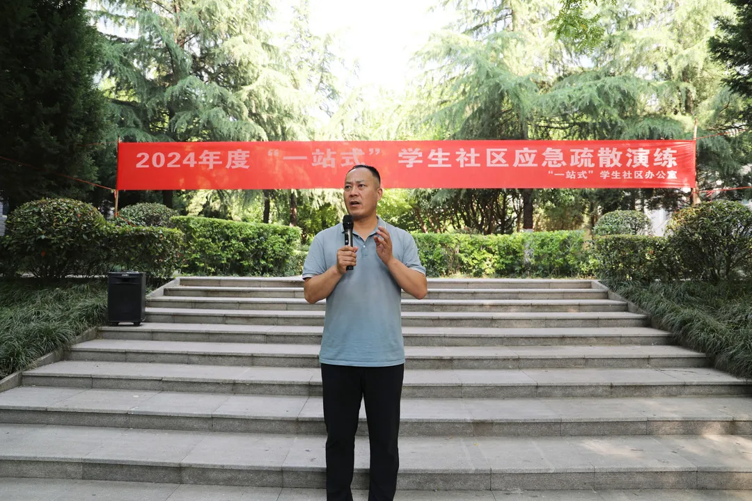 学生服务中心主任权勇太对本次演练作总结讲话,他重申了防灾减灾救灾工作的重要性,并表示,师生要坚持底线思维和极限思维,克服麻痹思想和侥幸心理,增强使命感和责任感,提高安全意识和应急疏散能力,守住安全底线,加强校园安全保障力度。