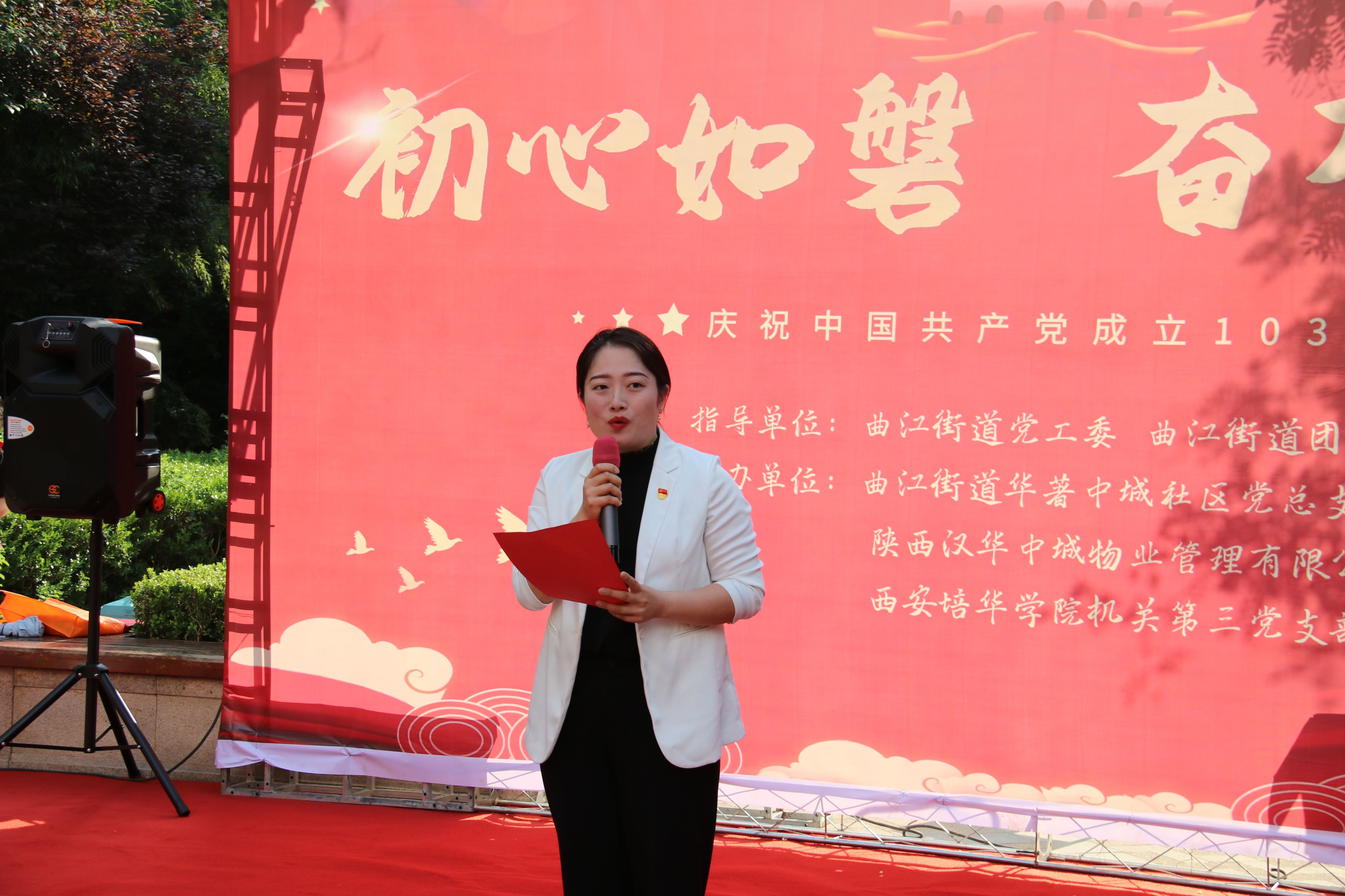 星空·官方站网页版艺术教育中心主任刘荣弟、机关第三党支部副书记董莹,曲江街道党工委副书记雷振波、武装部部长王雄伟、团委书记李迪萨、社会治理和平安建设办公室科长邹志超、华著中城社区党总支书记苟鹏雅参加活动。