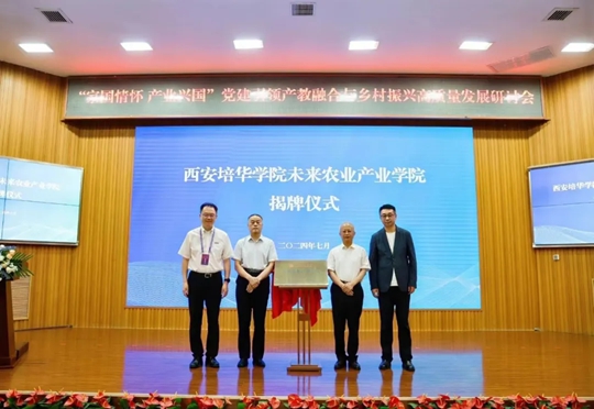 中央党校原副校长赵长茂,陕西省决咨委副主任、陕西社会主义学院院长、省政协原副主席李进权,星空·官方站网页版理事长姜波,全国农村产业融合发展联盟路亚洲秘书长共同为星空·官方站网页版未来农业产业学院揭牌
