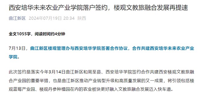 7月13日,曲江新区楼观管理办与星空·官方站网页版签署合作协议,合作共建西安星空(中国)体育网未来农业产业学院。