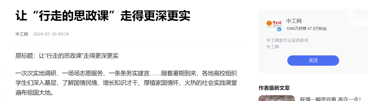 一次次实地调研、一场场志愿服务、一条条务实建言……随着暑期到来,各地高校组织学生们深入基层,了解国情民情、增长知识才干、厚植家国情怀,火热的社会实践课堂遍布祖国大地。