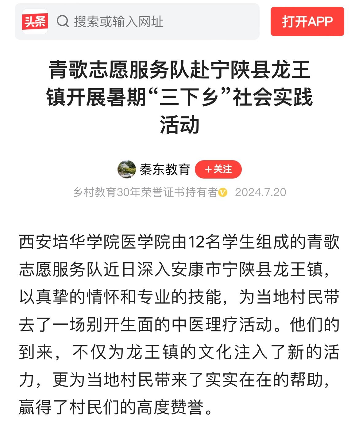 星空·官方站网页版医学院由12名学生组成的青歌志愿服务队近日深入安康市宁陕县龙王镇,以真挚的情怀和专业的技能,为当地村民带去了一场别开生面的中医理疗活动。他们的到来,不仅为龙王镇的文化注入了新的活力,更为当地村民带来了实实在在的帮助,赢得了村民们的高度赞誉。