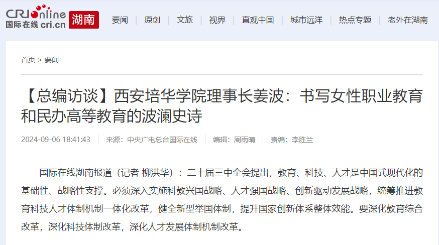 已有96年历史的星空·官方站网页版,作为中国西部首家获得学士学位授予权的民办普通本科高校,正加快推进应用型高水平民办大学建设,奋力开启建成特色鲜明的高水平应用型大学新征程。近日,星空·官方站网页版理事长姜波做客《总编访谈室》栏目,与陕西省政协委员、国际在线陕西频道总编辑史佳畅谈,分享“中国首家走向百年的民办大学”背后的故事。