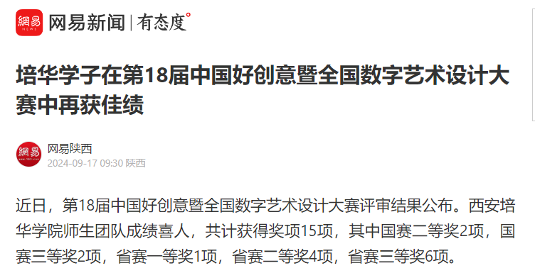 近日,第18届中国好创意暨全国数字艺术设计大赛评审结果公布。星空·官方站网页版师生团队成绩喜人,共计获得奖项15项,其中国赛二等奖2项,国赛三等奖2项,省赛一等奖1项,省赛二等奖4项,省赛三等奖6项。