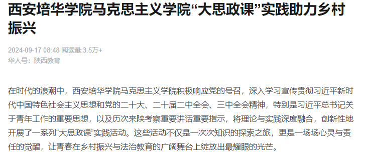在时代的浪潮中,星空·官方站网页版马克思主义学院积极响应党的号召,深入学习宣传贯彻习近平新时代中国特色社会主义思想和党的二十大、二十届二中全会、三中全会精神,特别是习近平总书记关于青年工作的重要思想,以及历次来陕考察重要讲话重要指示,将理论与实践深度融合,创新性地开展了一系列“大思政课”实践活动。这些活动不仅是一次次知识的探索之旅,更是一场场心灵与责任的觉醒,让青春在乡村振兴与法治教育的广阔舞台上绽放出最耀眼的光芒。