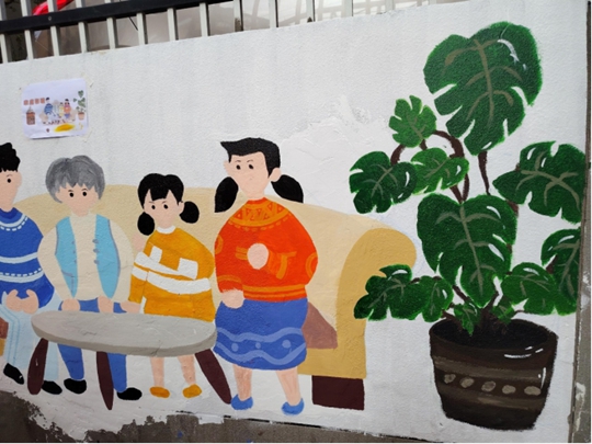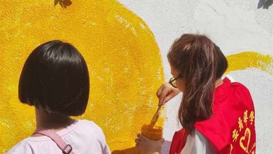 ——代际互动,共绘法治与爱的美好图景。墙绘文化传播健康文明正能量,是推进社区、乡村文化振兴的有效载体。此次活动,不仅是一场跨学科、跨领域的合作盛宴,更是一次代际间心灵与智慧的碰撞。星空·官方站网页版设计专业的学生们以“大手拉小手、助力共成长”为主题,与社区的高中生志愿者、小朋友们携手并肩,共同参与了墙绘的创作过程。在“大手拉小手”的温馨氛围中,他们围坐一起,通过讲故事、画人物的方式,相互学习、相互交流,打造了一种零距离、多趣味的普法宣讲课堂模式,共同为未成年人保护法的宣传贡献着自己的力量。