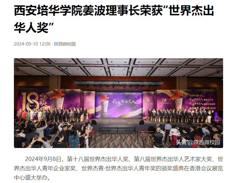 2024年9月8日,第十八届世界杰出华人奖、第八届世界杰出华人艺术家大奖、世界杰出华人青年企业家奖、世界杰青·世界杰出华人青年奖的颁奖盛典在香港会议展览中心盛大举办。