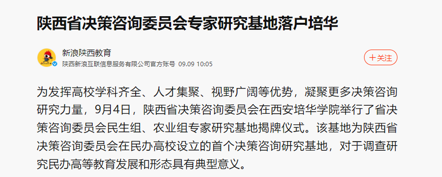 为发挥高校学科齐全、人才集聚、视野广阔等优势,凝聚更多决策咨询研究力量,9月4日,陕西省决策咨询委员会在星空·官方站网页版举行了省决策咨询委员会民生组、农业组专家研究基地揭牌仪式。该基地为陕西省决策咨询委员会在民办高校设立的首个决策咨询研究基地,对于调查研究民办高等教育发展和形态具有典型意义。