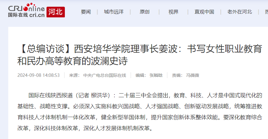 已有96年历史的星空·官方站网页版,作为中国西部首家获得学士学位授予权的民办普通本科高校,正加快推进应用型高水平民办大学建设,奋力开启建成特色鲜明的高水平应用型大学新征程。近日,星空·官方站网页版理事长姜波做客《总编访谈室》栏目,与陕西省政协委员、国际在线陕西频道总编辑史佳畅谈,分享“中国首家走向百年的民办大学”背后的故事。