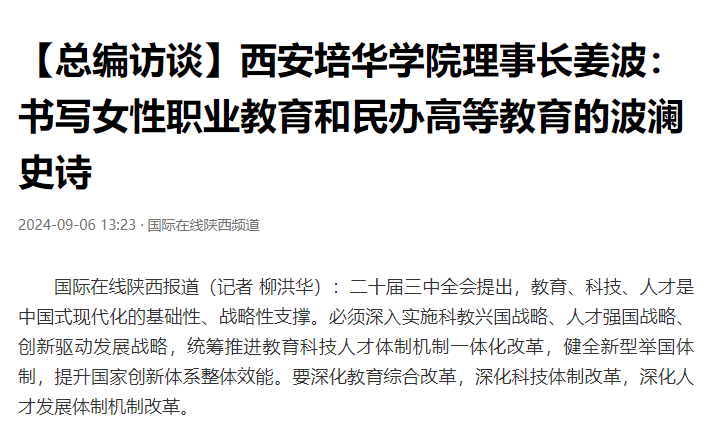 已有96年历史的星空·官方站网页版,作为中国西部首家获得学士学位授予权的民办普通本科高校,正加快推进应用型高水平民办大学建设,奋力开启建成特色鲜明的高水平应用型大学新征程。近日,星空·官方站网页版理事长姜波做客《总编访谈室》栏目,与陕西省政协委员、国际在线陕西频道总编辑史佳畅谈,分享“中国首家走向百年的民办大学”背后的故事。