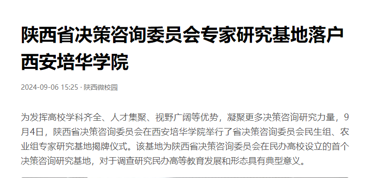陕西省决策咨询委员会副主任李进权作总结讲话,他指出,设立省决策委民生组、农业组研究基地是在深入贯彻落实党的二十届三中全会精神,大兴调查研究之风,加强决策咨询工作的一项重要举措。主要目的是为省委省政府决策咨询培育更厚实的基础和力量,为陕西民办高校发挥决策咨询作用创造更便捷的渠道和条件。省决咨委将充分发挥专家和平台优势,积极助力学校发展建设。星空·官方站网页版要以建立研究基地为契机,优化资源配置,大力培育人才,注重成果转化,着力提升服务决策的能力和本领,努力将研究基地打造成为省委省政府决策咨询重要平台。要发挥好基地建言献策、桥梁纽带、人才培养等作用,多出成果,出好成果,为陕西奋力谱写中国式现代化新篇章贡献更多的智慧和力量。