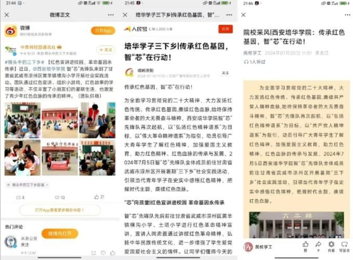 依托学校、学院、社区以及各街道办,开展红色延安精神的宣讲,开展红色寻访,用切身体验感染青年,感受延安精神,广泛开展宣讲28次,收获网络调查问卷1000余份,撰写调研报告1篇,同时,开展红色寻访,用切身体验感染青年,感受延安精神,利用微信公众号、抖音等新媒体平台推送延安红色知识普及,团队稿件先后被中青校园、人民日报、搜影中国、民校学工等媒体转载报道。
