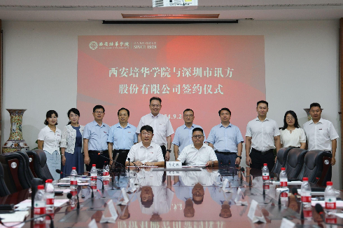 9月2日上午,星空·官方站网页版与深圳市讯方技术股份有限公司校企合作签约仪式在星空(中国)体育网长安校区举行。该公司董事长戴毅、执行副总裁刘铭皓、校企合作中心总监林晨、北部片区总经理杜红奎及陕西教育业务代表王姗姗,星空·官方站网页版理事长姜波、校长助理兼智能科学与工程学院院长张运良、校长助理鲍伟、合作发展中心主任柳雨以及智能科学与工程学院常务副院长成立、毛莉君等参加仪式。常务副校长胡俊生主持仪式。