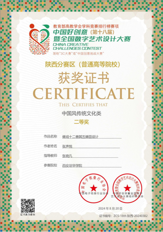 中国好创意暨全国数字艺术设计大赛,是入选教育部中国高等教育学会发布的《全国普通高校大学生竞赛分析报告》赛项,也是我国第一个以数字艺术、数字设计、数字创意、数字媒体以及数字技术创新领域各专业为主的综合类规模大、跨学科、多专业、参与院校多、影响广泛的权威赛事,更是我国第一个将比赛上升到哲学高度的赛事。还是第一个免费为参赛作品提供版权保护与存证的大赛。本届大赛共有3932所院校参赛,常规赛道报名投稿量为293751件作品,专项赛和计时赛共计20096件作品,竞争异常激烈。