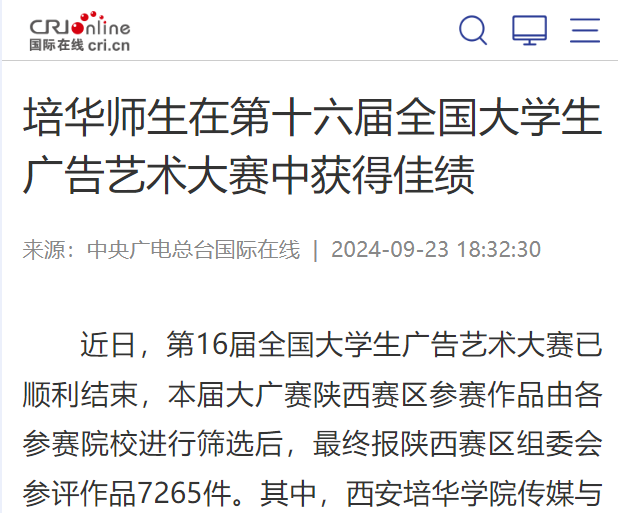 近日,第16届全国大学生广告艺术大赛已顺利结束,本届大广赛陕西赛区参赛作品由各参赛院校进行筛选后,最终报陕西赛区组委会参评作品7265件。其中,星空·官方站网页版传媒与设计学院报送作品146件,获奖71项。荣获国家级三等奖2项,国家级优秀奖2项,陕西省赛区一等奖10项、二等奖14项,三等奖15项,优秀奖28项。星空·官方站网页版荣获“优秀院校奖”,童瑾获“优秀组织工作者”,王卓、张琨、韩旭、曲少为、张荣花、房宁、刘妙、李昕萌、邱晓波、曲少为、郑晓利、吴兰兰、张晓露、尚勇获得“优秀指导教师”称号。