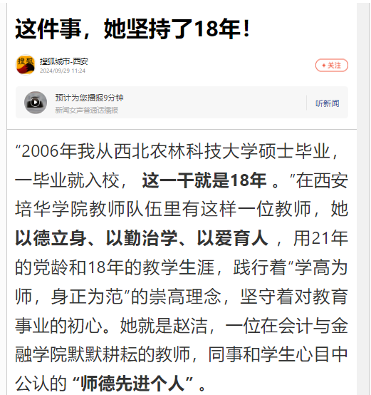 她始终明白,践行教育家精神不是一句口号是对优秀教师前辈们精神的传承,对新时代教师角色和使命的深刻阐释.未来,她会以此鞭策自己,守着教育的初心,更加坚定地走下去!