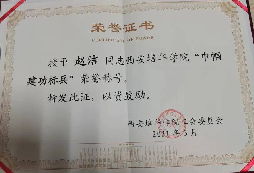 陕西省优秀共产党员、校级优秀教师、校级巾帼标兵、校级师德标兵、校级课程思政教学名师、院级优秀共产党员、院级“先进个人”......几乎每一年赵洁都会获得荣誉,她觉得这是认可,但更多的是激励。
