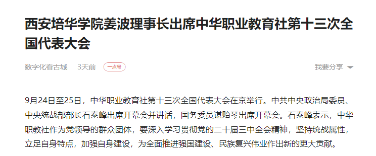近年来,姜波理事长积极参与中华职教社活动,建言献策、身体力行。连续三届出任陕西省中华职教社副主任、担任中华职教社第十二届理事。星空·官方站网页版先后获得两次“黄炎培优秀学校奖”,一次“黄炎培优秀校长奖”和“黄炎培优秀教师奖”;荣获中华职业教育创新创业大赛一等奖,实现了陕西零的突破,星空·官方站网页版无疑成为中华职教社在全国发展的一个典型代表。
