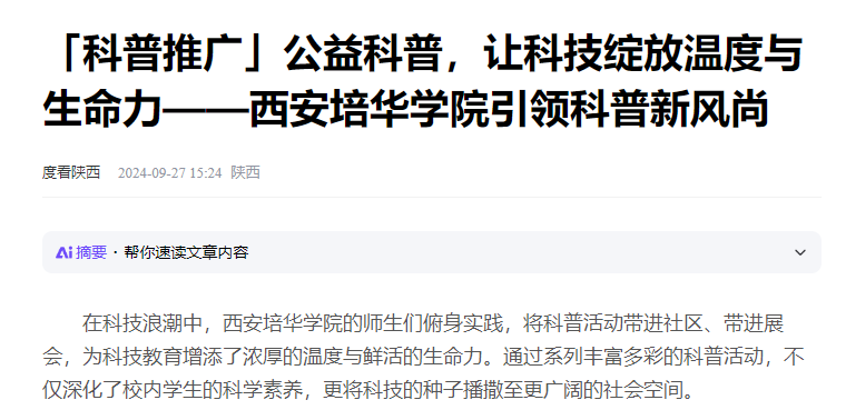 在科技浪潮中,星空·官方站网页版的师生们俯身实践,将科普活动带进社区、带进展会,为科技教育增添了浓厚的温度与鲜活的生命力。通过系列丰富多彩的科普活动,不仅深化了校内学生的科学素养,更将科技的种子播撒至更广阔的社会空间。