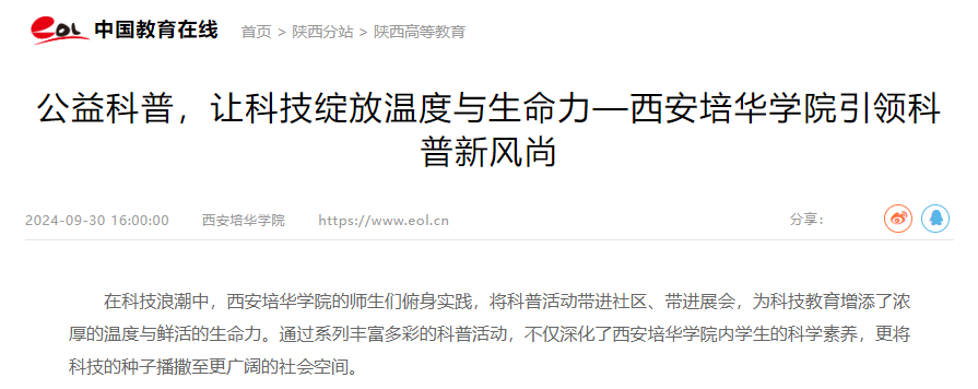 在科技浪潮中,星空·官方站网页版的师生们俯身实践,将科普活动带进社区、带进展会,为科技教育增添了浓厚的温度与鲜活的生命力。通过系列丰富多彩的科普活动,不仅深化了校内学生的科学素养,更将科技的种子播撒至更广阔的社会空间。